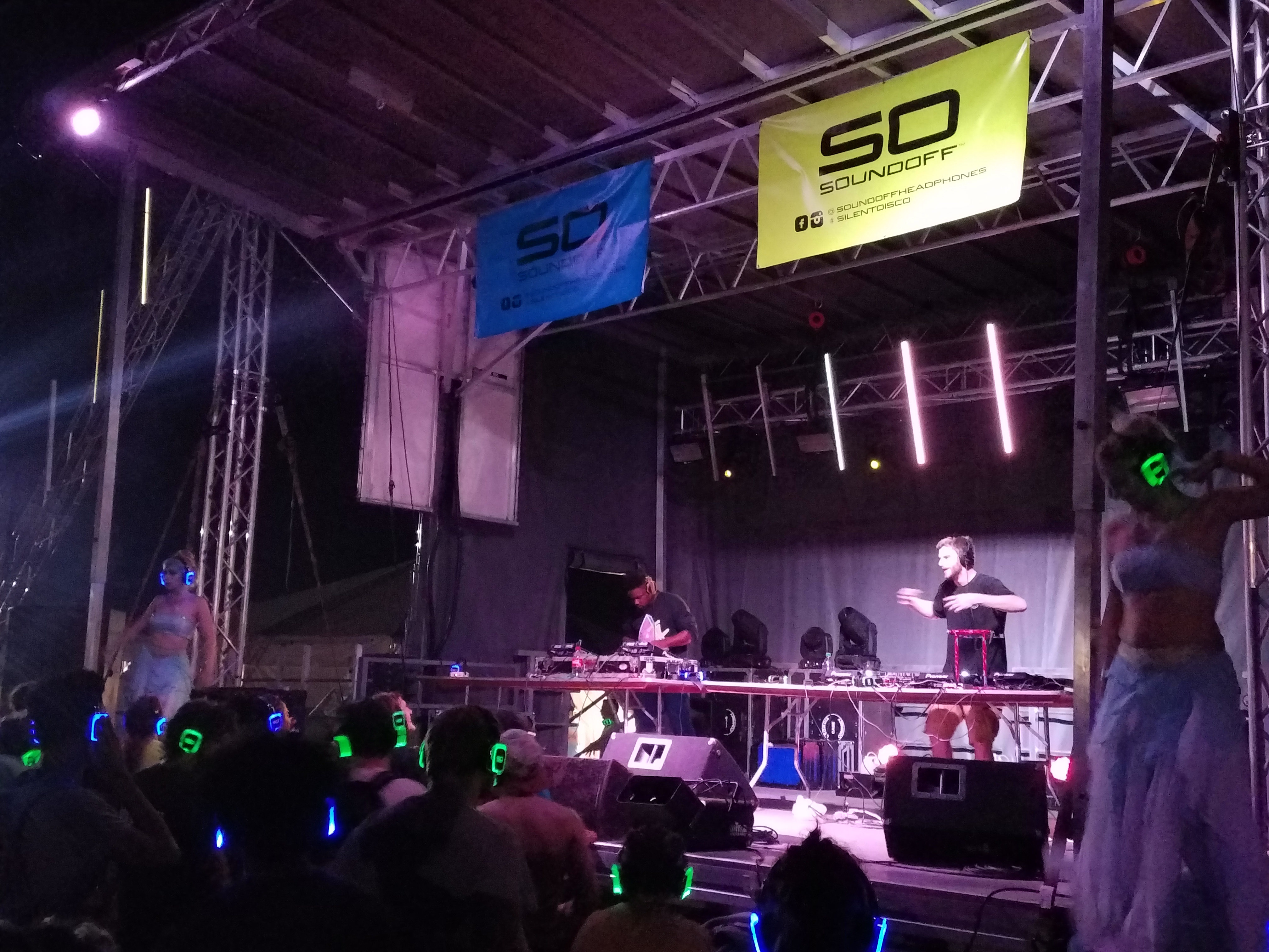 8. Silent Disco. LOVE IT! Campers can sleep, and I can dance! Huge smiles all around. What is silent disco you may ask yourself? Two DJ’s. Headphones with three channels- Green, Blue, Red. Green and Blue were colors for the two different DJ’s. Red was not sound. Your can switch the channels on your headphones. This stage was only on the campgrounds.