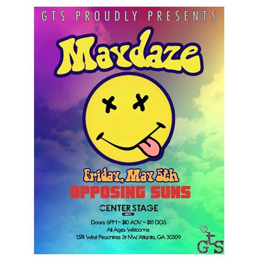 A message from the band: “Opposing Suns are playing The Vinyl at Center Stage thanks to Grow the Scene! This is awesome!!! We are so happy to be able to play this stage and work with this production group. If we have 100 people or more at our show we will continue to play shows for Grow the Scene in Atlanta and other big cities in the nation. Please help us by coming out to this show! You can help us break out to other states and get our music heard throughout the U.S.! This is a full band show, and we are planning to bring the music to a whole new level. We will have lots of our art for sale at the show as well. We can’t wait to rock with ya’ll! Tickets are $10 or you can pay $15 at the door. You can call me for tickets at 770-837-1392 or come to a show before May 5th to get some.